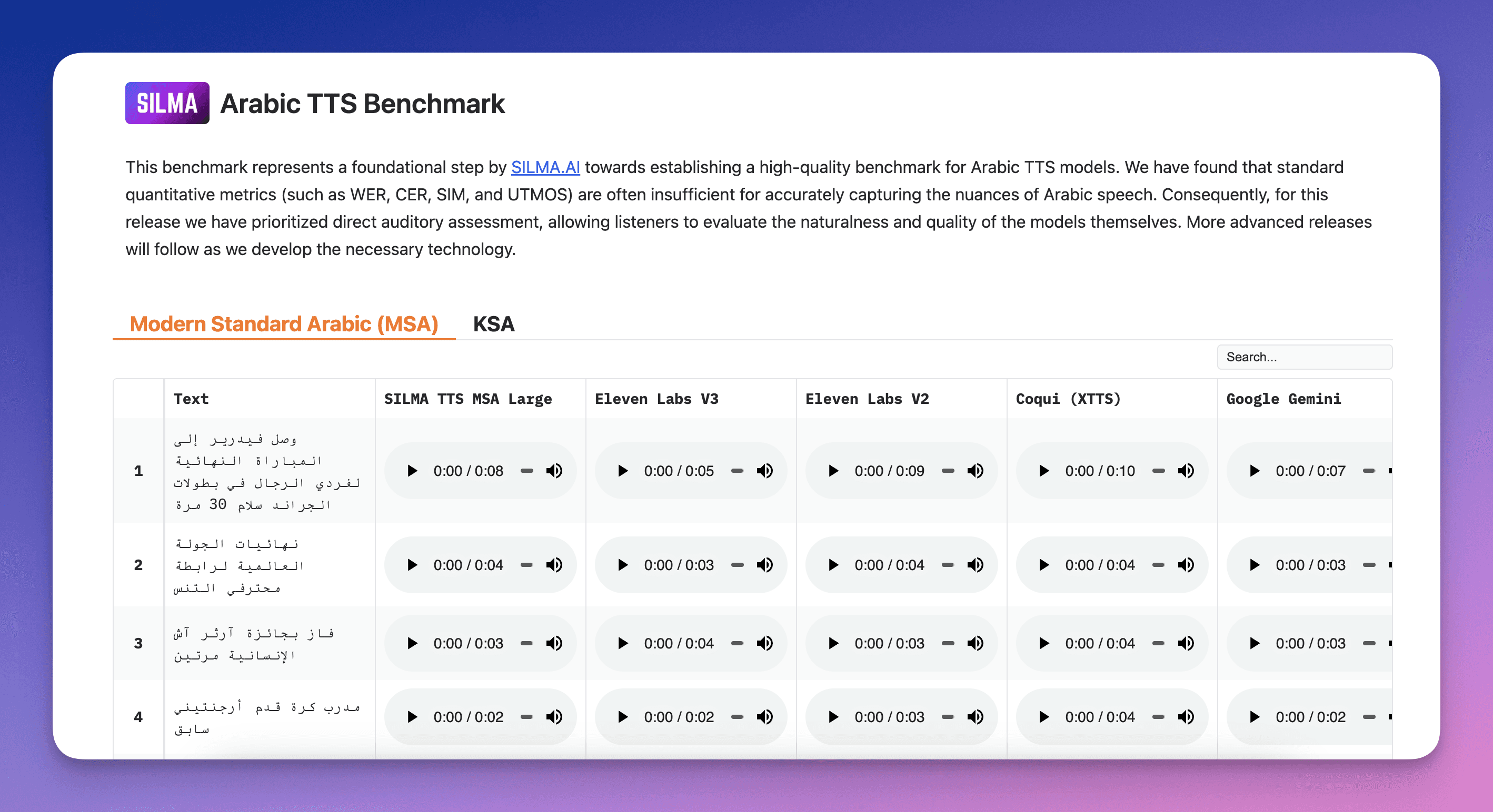 Arabic TTS Benchmark